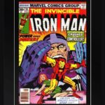 Couverture spéciale pour fêter l'anniversaire du 100éme numéro de la série Iron Man avec un superbe lettrage désigné par Bill Mantlo.